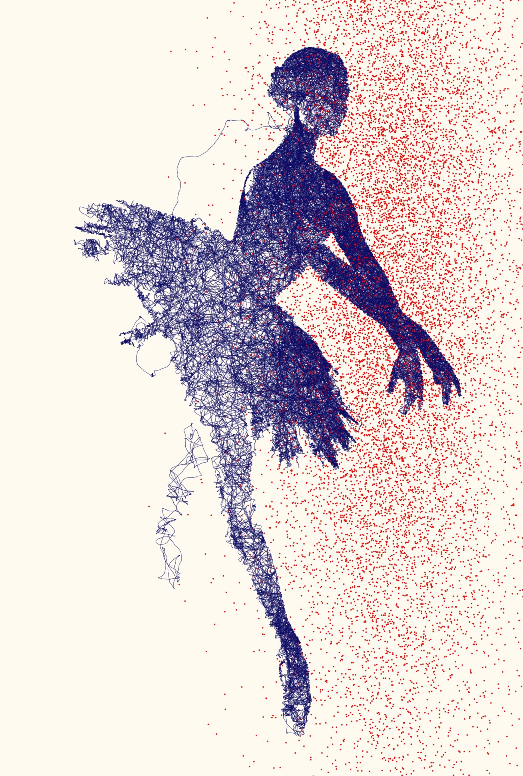 La technique, bien qu’importante dans mon processus, n’est qu’un médium. Comme Jean-Michel Jarre a pu créer une musique étonnante grâce aux instruments électroniques de sa conception, comme Vermeer a pu explorer les ressources de la camera obscura ou Léonard de Vinci celles de la mécanique, de l’optique et de l’anatomie, j’utilise les outils contemporains pour élargir le champ du sensible. Ce qui compte, c’est ce moment où, au milieu d’un entrelacs de lignes sans direction apparente, quelque chose s’organise, un visage affleure, une émotion se laisse deviner. Mon travail invite le spectateur à ce dialogue avec l’ambiguïté, à reconnaître une présence dans un dessin qui semble pourtant fait de hasard.